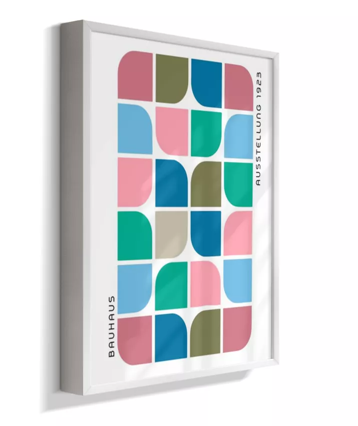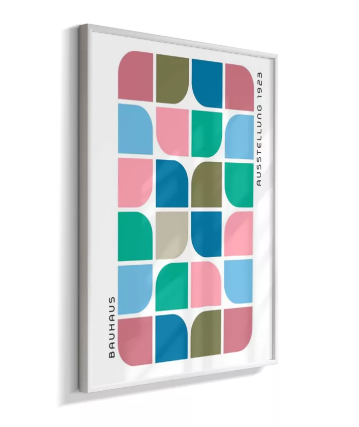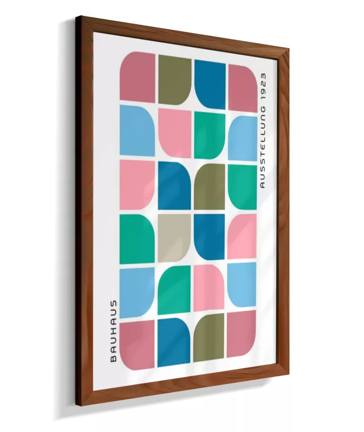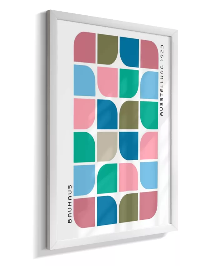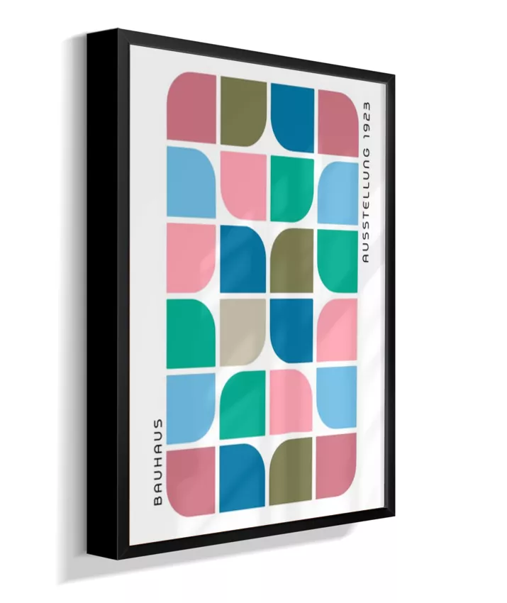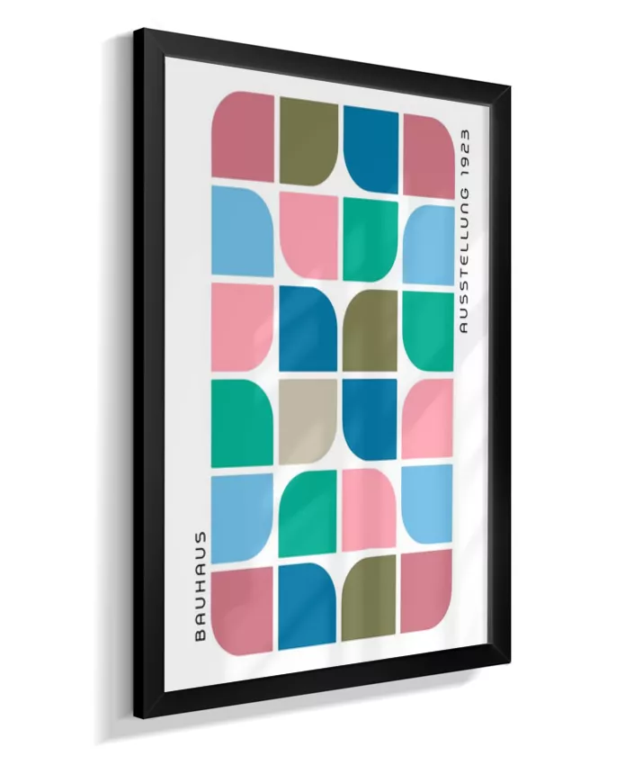 Design minimalista e moderno inspirado no movimento Bauhaus, com formas geométricas marcantes, linhas precisas e cores primárias. Ideal para ambientes contemporâneos, esse quadro une arte e funcionalidade, trazendo equilíbrio visual e sofisticação com um toque retrô. Uma escolha perfeita para quem busca elegância atemporal com identidade criativa.