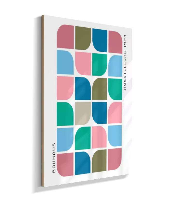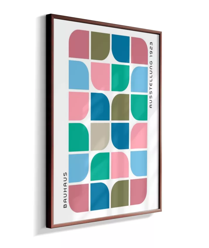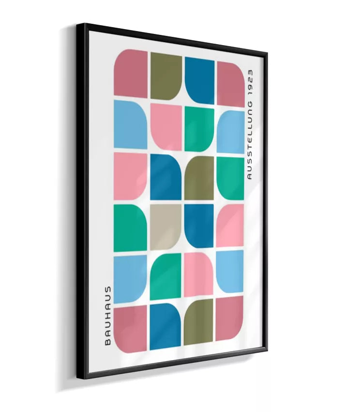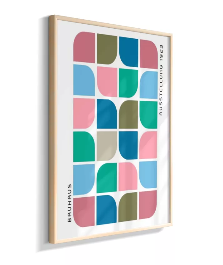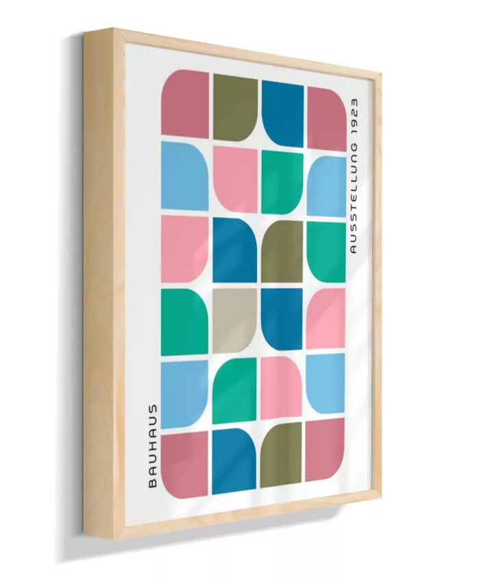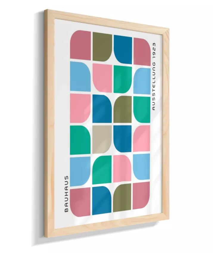 Design minimalista e moderno inspirado no movimento Bauhaus, com formas geométricas marcantes, linhas precisas e cores primárias. Ideal para ambientes contemporâneos, esse quadro une arte e funcionalidade, trazendo equilíbrio visual e sofisticação com um toque retrô. Uma escolha perfeita para quem busca elegância atemporal com identidade criativa.