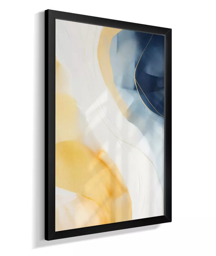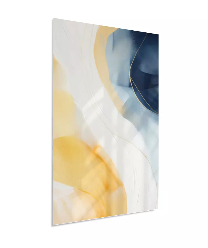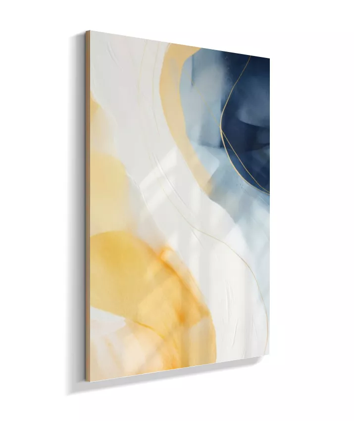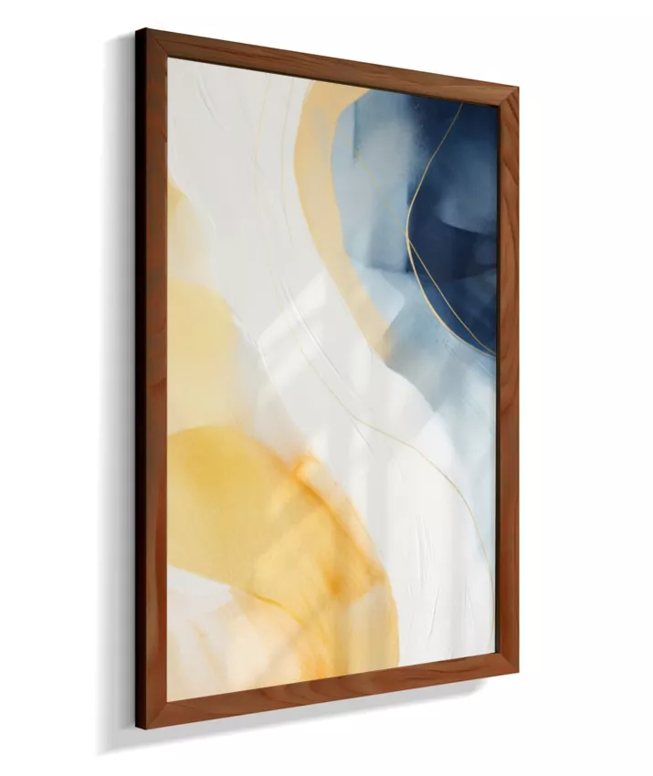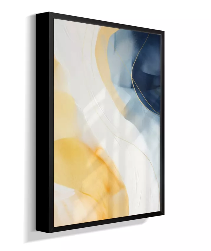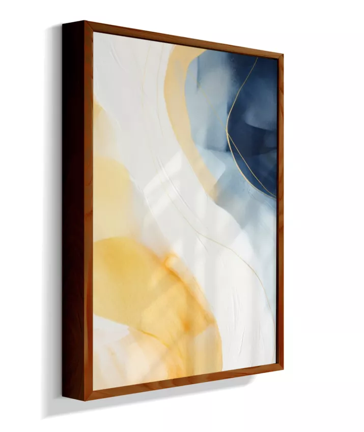 Em Síncrese, formas fluidas e cores contrastantes se entrelaçam como se compartilhassem uma mesma vibração. O dourado quente e o azul profundo parecem dialogar, criando uma conexão visual que dispensa lógica — apenas se sente. Esta obra moderna é um convite à sinestesia: uma experiência onde o olhar escuta e o silêncio se colore. Ideal para ambientes contemporâneos que valorizam o impacto sensorial e a arte como expressão intuitiva.