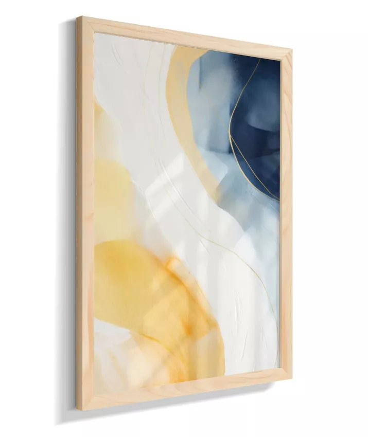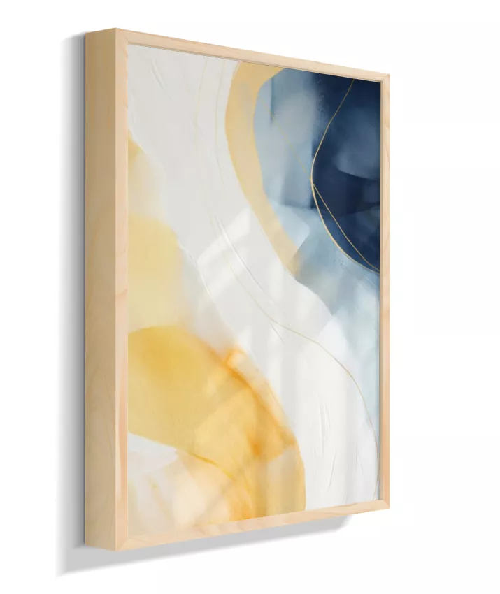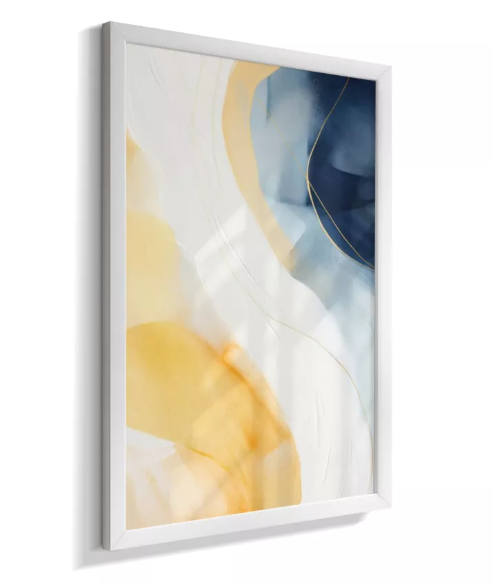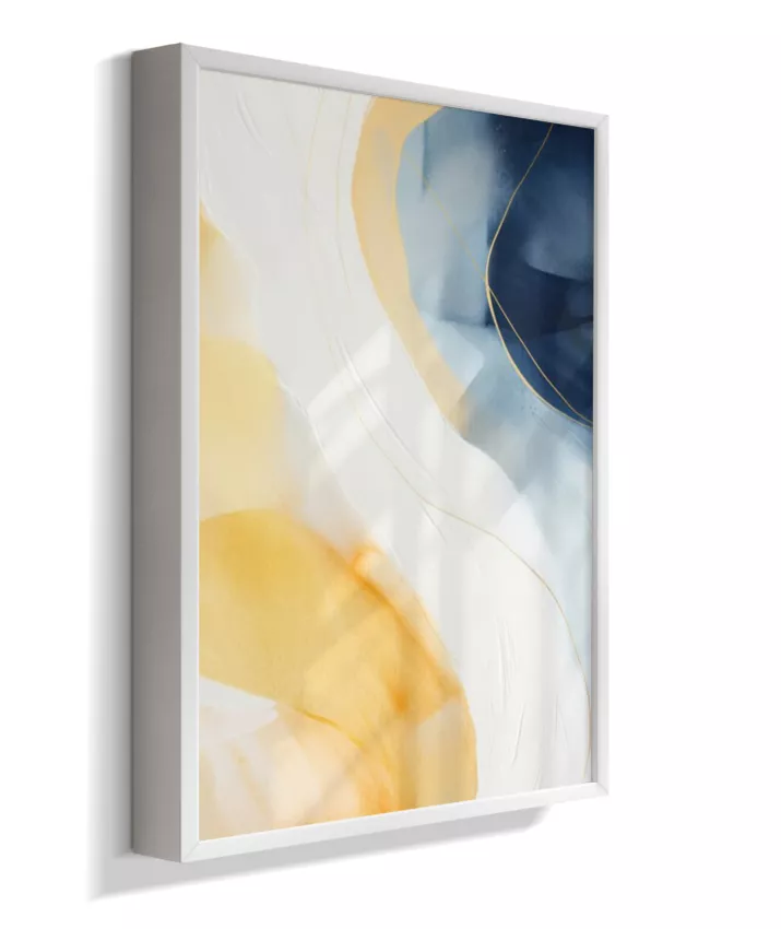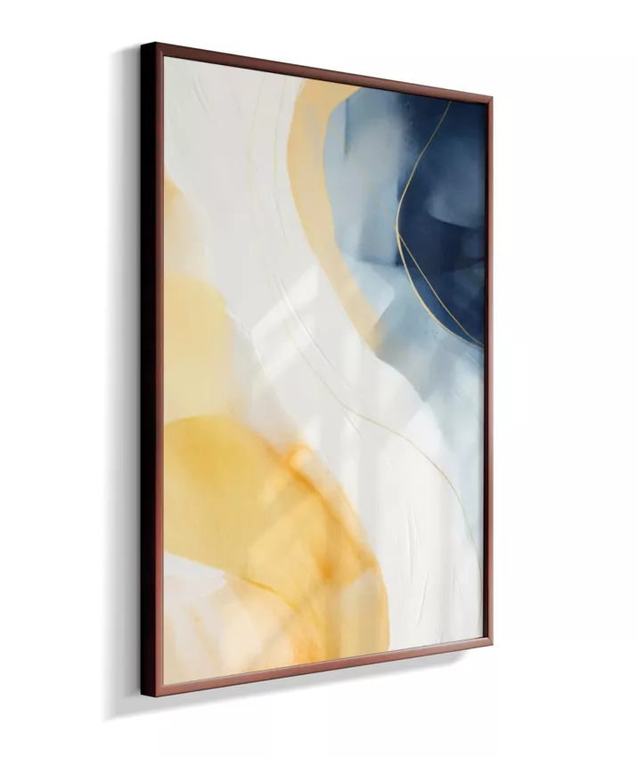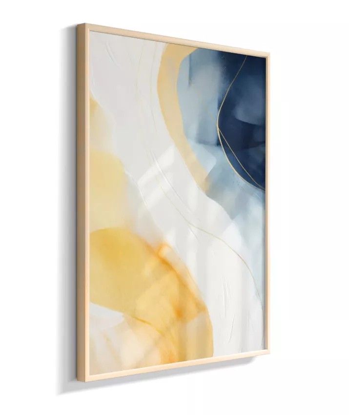 Em Síncrese, formas fluidas e cores contrastantes se entrelaçam como se compartilhassem uma mesma vibração. O dourado quente e o azul profundo parecem dialogar, criando uma conexão visual que dispensa lógica — apenas se sente. Esta obra moderna é um convite à sinestesia: uma experiência onde o olhar escuta e o silêncio se colore. Ideal para ambientes contemporâneos que valorizam o impacto sensorial e a arte como expressão intuitiva.