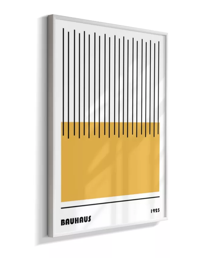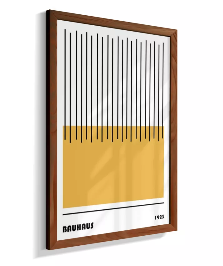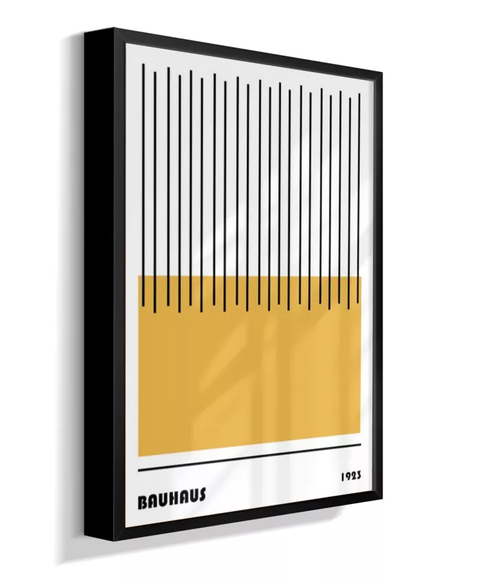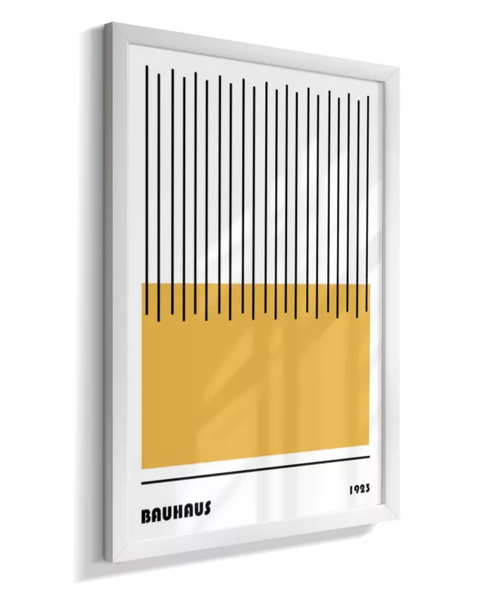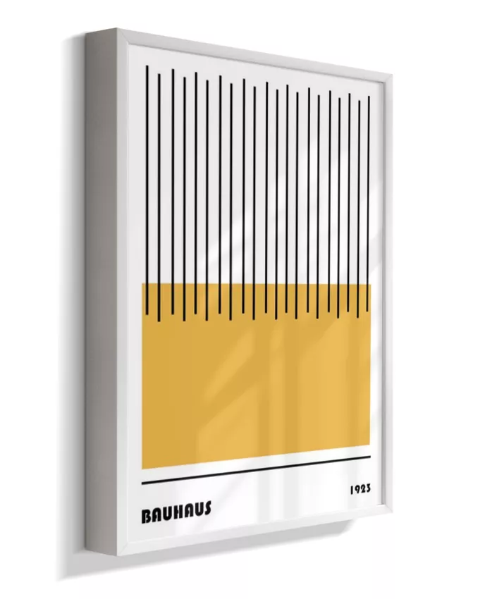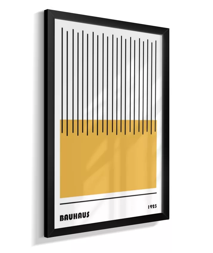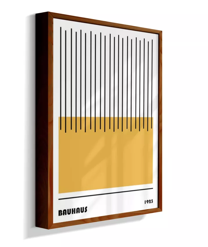 Design minimalista e moderno inspirado no movimento Bauhaus, com formas geométricas marcantes, linhas precisas e cores primárias. Ideal para ambientes contemporâneos, esse quadro une arte e funcionalidade, trazendo equilíbrio visual e sofisticação com um toque retrô. Uma escolha perfeita para quem busca elegância atemporal com identidade criativa.