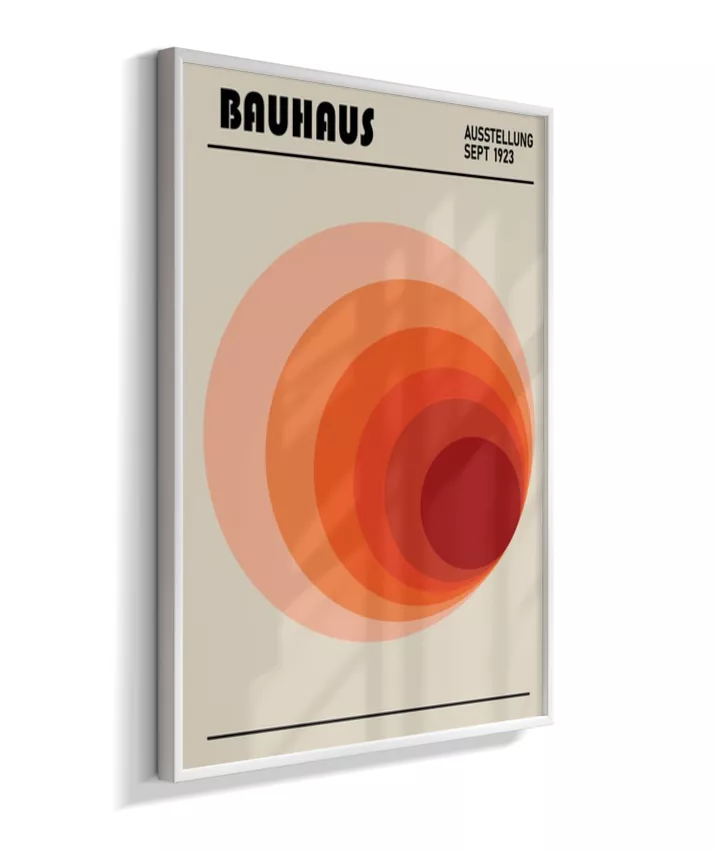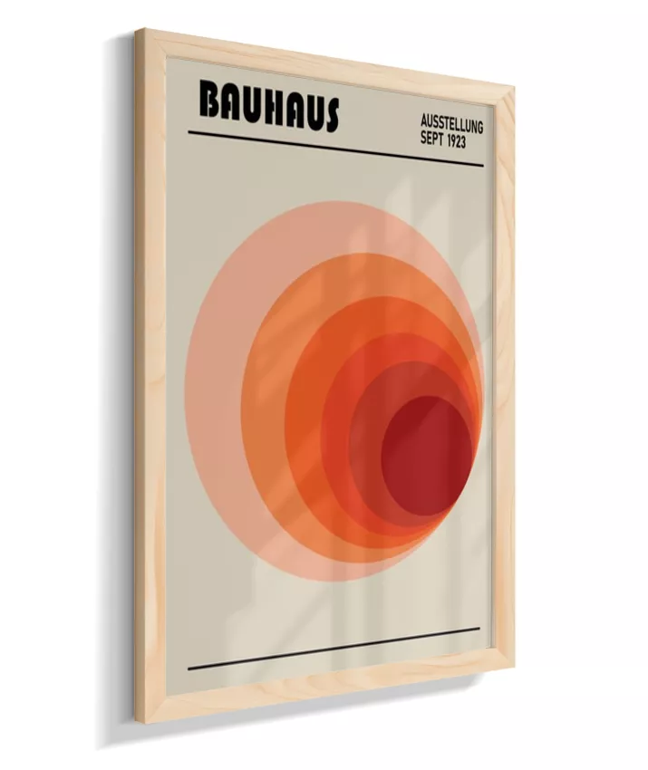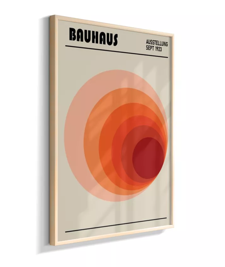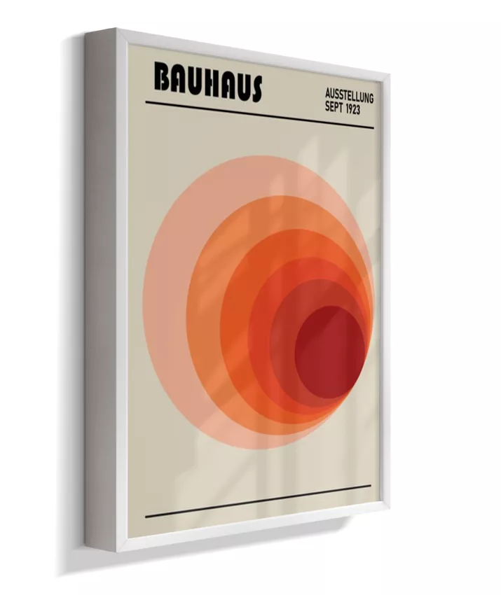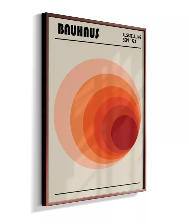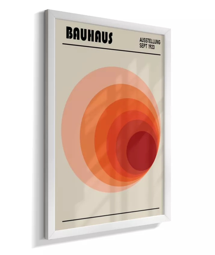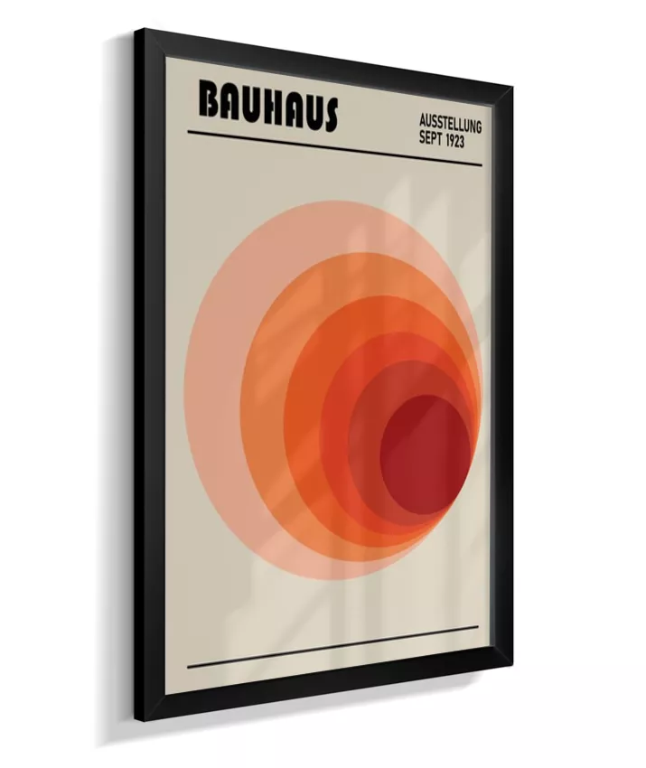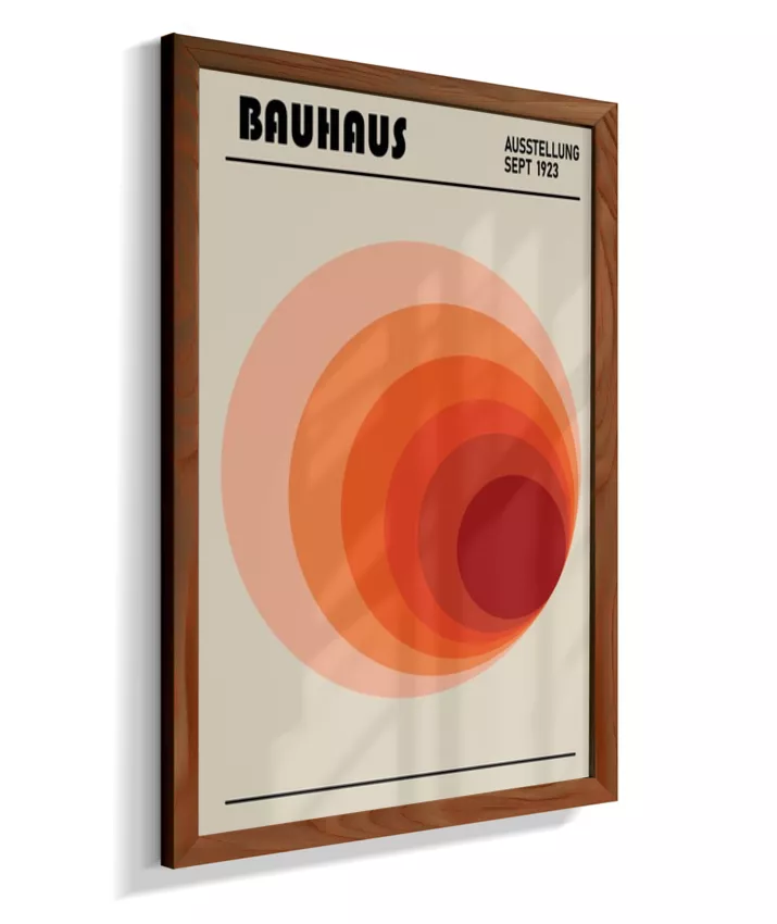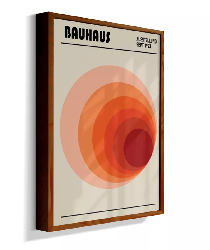 Design minimalista e moderno inspirado no movimento Bauhaus, com formas geométricas marcantes, linhas precisas e cores primárias. Ideal para ambientes contemporâneos, esse quadro une arte e funcionalidade, trazendo equilíbrio visual e sofisticação com um toque retrô. Uma escolha perfeita para quem busca elegância atemporal com identidade criativa.