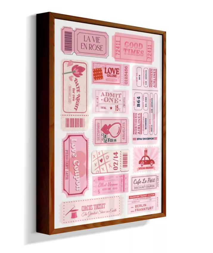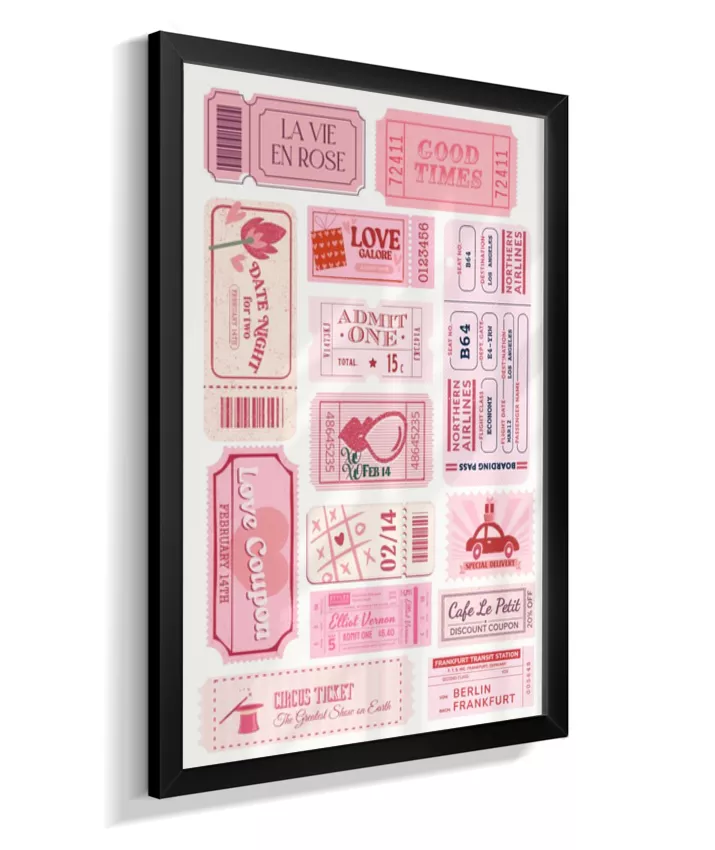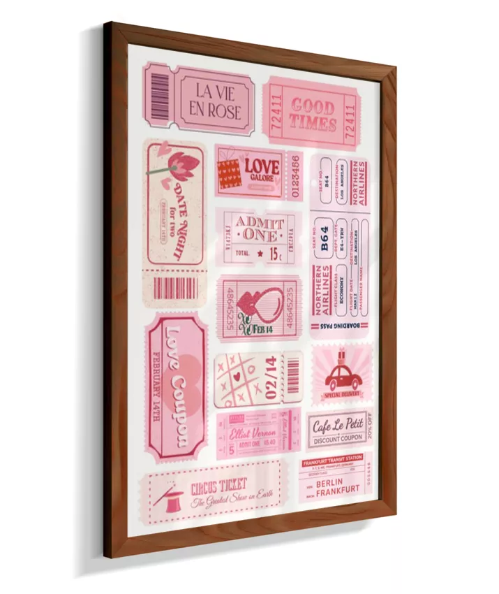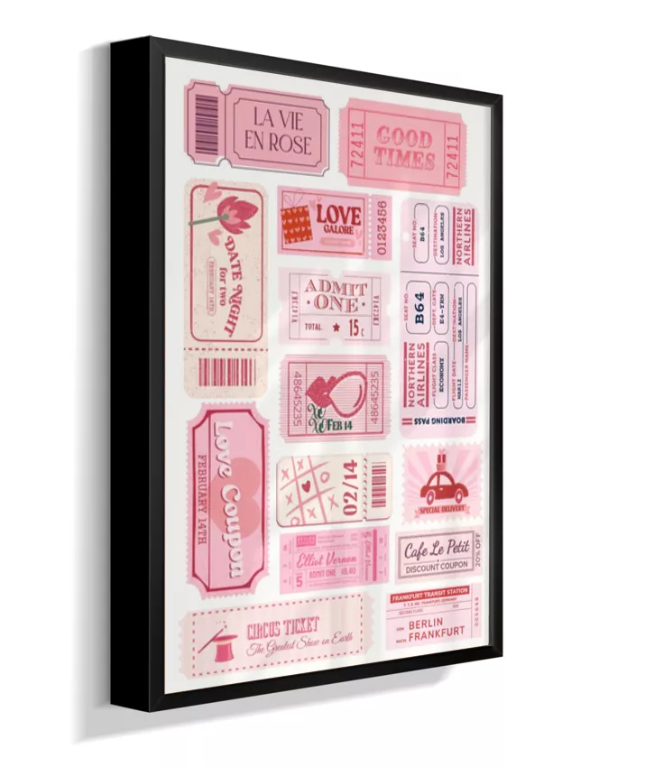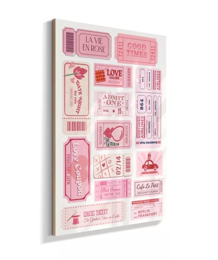 Matchbox é um quadro vibrante e divertido que mistura caixinhas de fósforo vintage, ingressos (tickets) retrô e elementos pop, com frases ousadas e cores vivas. Uma arte nostálgica com toque moderno, perfeita para ambientes criativos e cheios de personalidade.